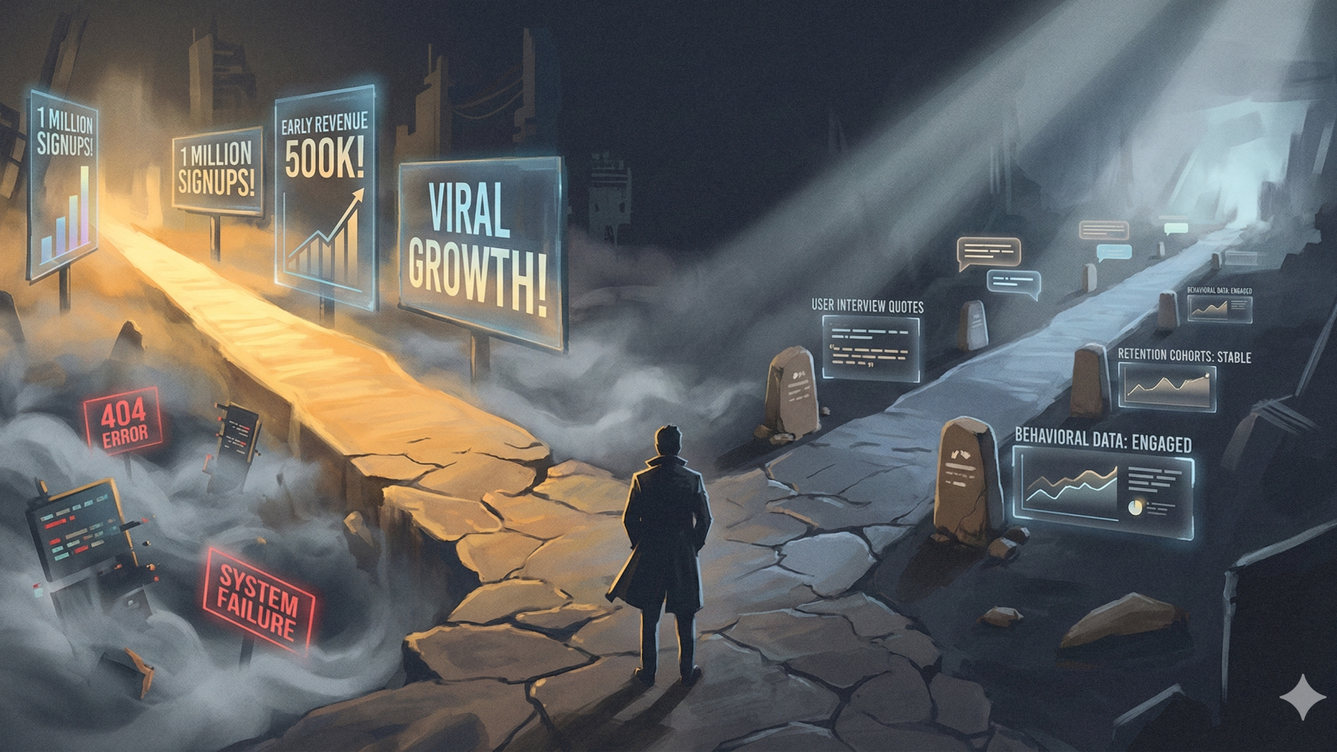 Why AI startups need lean methodology comes down to distinguishing signal from noise in an environment flooded with false positives. AI startup distribution challenges multiply when thousand startups launch similar solutions with similar positioning. Nobody stands out. Early traction doesn't guarantee retention.
